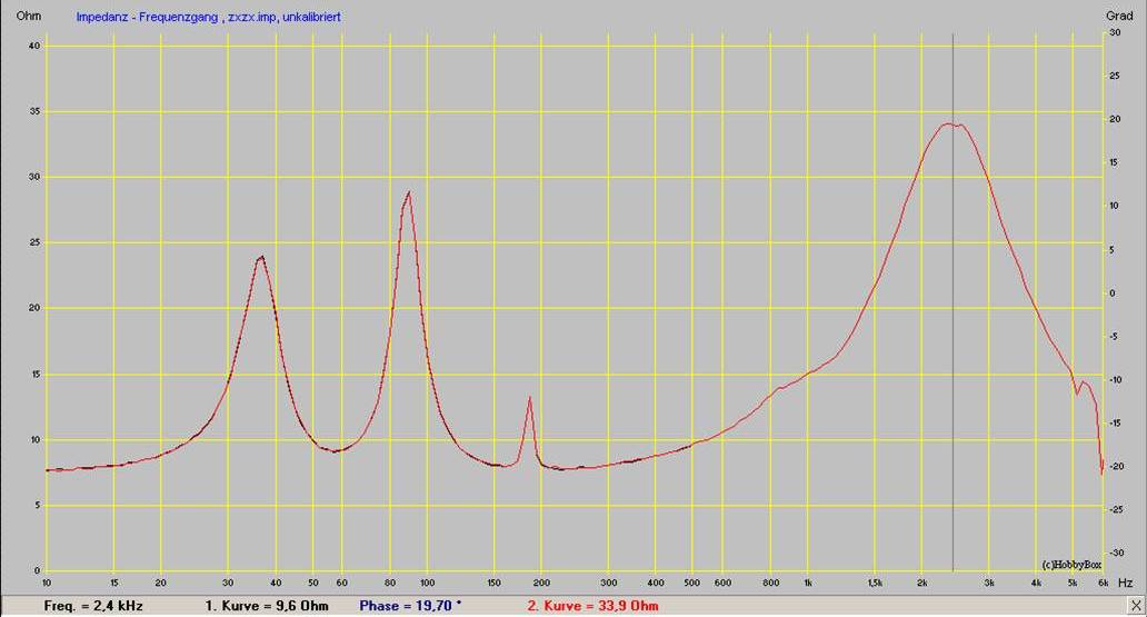 Bawiąc się z ciekawości programem Hobbybox zrobiłem pomiar impedancji kolumny.