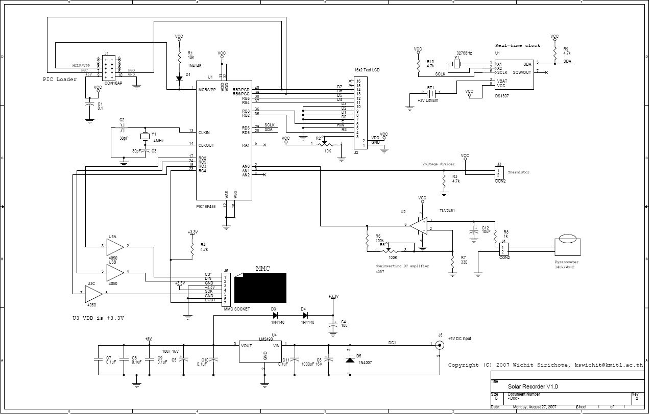 Jest to nowa wersja rejestratora energii słonecznej składająca się z zegara czasu rzeczywistego (RTC, Real-Time Clock) DS1307 i wzmacniacza do piranometru. Na wyświetlaczu LCD pokazywane są: nazwę pliku, numer próbki, odczyty dla kanałów Ch01 i Ch02 konwertera analogowo-cyfrowego i czas w formacie HH:MM.