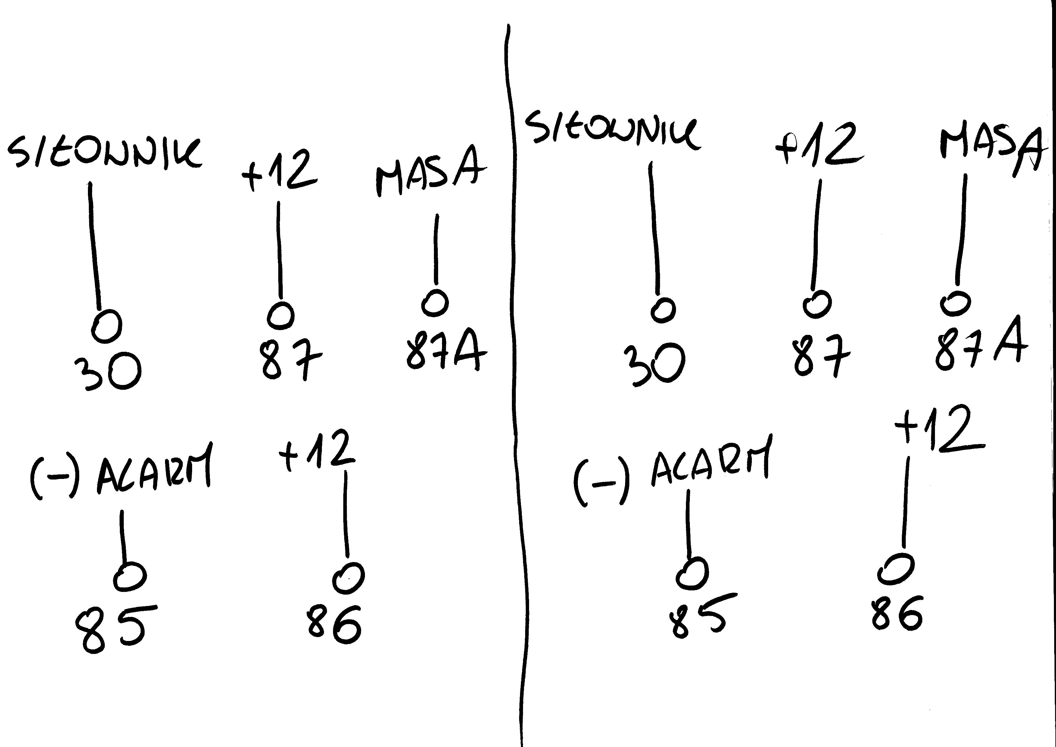 Alarm nie posiada centralki do zamka centralnego tylko dwa masowe przewody do sterowania. W drzwiach kierowcy zamontowany jest siłownik Slave, który ma sterować pracą zamka. Wyczytałem że aby to wszystko poprawnie zadziałało należy zrobić układ na dwóch przekaźnikach... i właśnie w tym tkwi problem, jak to ustrojstwo zmontować?