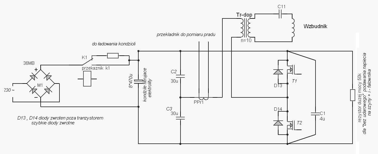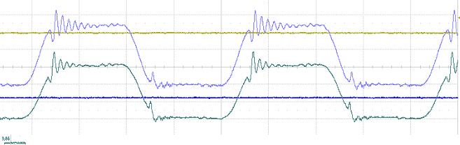 Zrobiłem wszystko płytka trafo dopasowujące no ale niestety padają mi tranzystory jak zasilę je z 230V. Obniżając napięcie do 50V wyciągam 7A co jest za mało. Na wykresie poniżej zamieszczam przebieg napięcia na tranzystorach może ktoś ma pomysł jak pozbyć się tych oscylacji, i skąd one sie biorą. Jak ktoś jest zainteresowany to proszę pisać podam dane które Was interesują, a nie zamieszam tu schematów bo każdy wie jak wygląda półmostek klasyczny. Ja nic więcej nie dodałem.