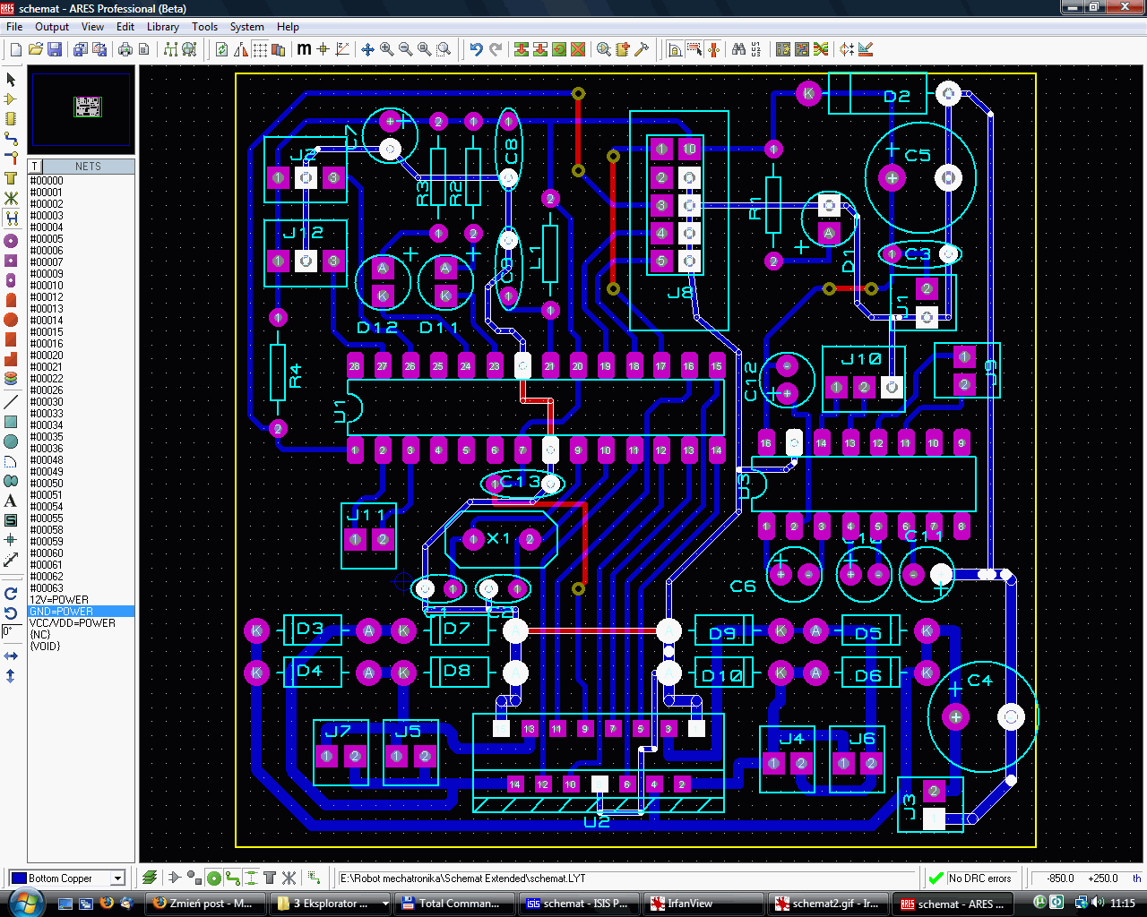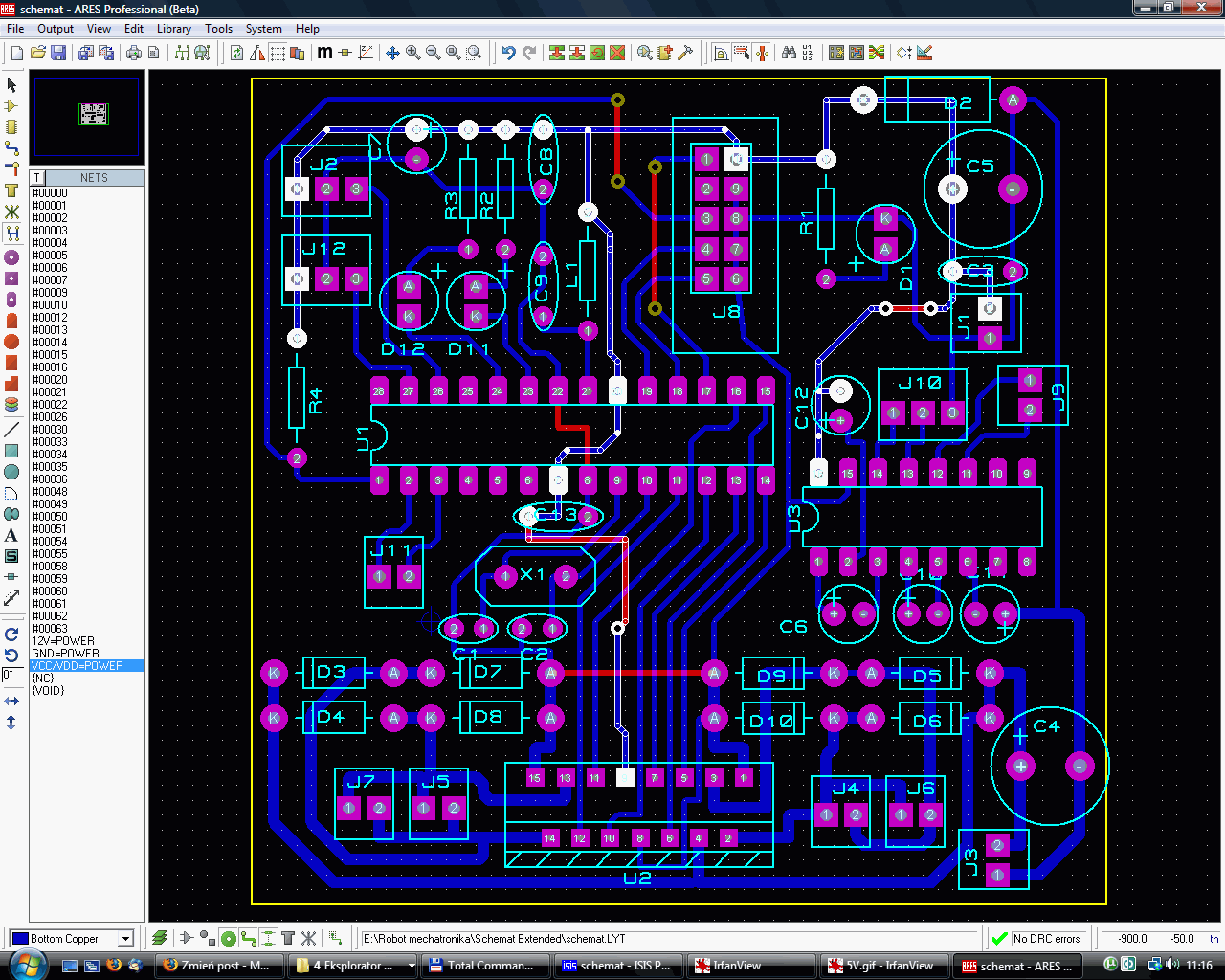 witam, stawiam pierwsze kroki w świecie elektroniki, postanowiłem zbudować pierwszy układ zaprojektowany przez siebie. Żeby nie rzucać się od razu na głęboką wodę postanowiłem ze zrobię sobie prostego robocika wzorując się na robocie z komputer świata. Złożenie było takie: