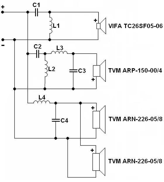 Podział ARP - Vifa jest rozbity ze względu na podbicie charakterystyki tesli ARP w okolicach 4kilo, a taki trik powinien skorygować charkę zestawu do bardziej liniowej, bez brzydkich "wybrzuszeń". Wypadkowa dwóch ARNów po 8r wyniesie 4r i przy końcówce pasma jakie będą przenosić ich efektywność wyniesie ok. 89dB. "Początek pasma" przenoszonego przez głośnik średnio-tonowy ma efektywność ok. 90dB; a "koniec pasma" po skorygowaniu zwrotnicą będzie wynosił również ok. 90dB. Vifka puszczona od 3,7-3,8 kilo w tym zakresie częstotliwości ma ok. 91dB, ale biorąc pod uwagę naturalne jej tłumienie ze względu na to, że ma ona 6r, a zestaw jest komponowany pod 4r to będzie miała spadek ok. 1-2dB. Tak więc moim zdaniem zestaw nie wymaga stosowania tłumików efektywności poszczególnych głośników, ponieważ nie ma sensu na siłę korygować różnic ok. 1dB. Pozostaje tylko obliczyć ze wzorów wartości elementów i skorygować je z dostępnymi wartościami na rynku. Proszę o ewentualne poprawki, jeżeli coś źle przemyślałem oraz jakiej firmy elementy zastosować ? Czy jest sens płacić astronomiczne kwoty w akkusie? czy kupić coś mniej audiofilskiego?