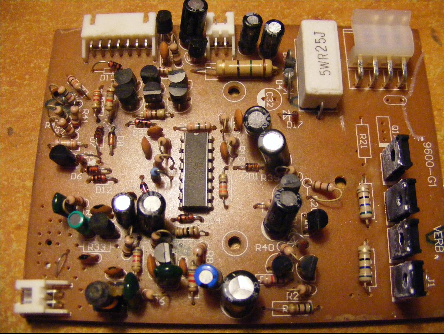 Nie jeździ on do przodu. Gdy podpoiłem miernik do silniczka to gry dałem do tyły na sterowniku było około 6v a gdy dałem do przody było tylko -0.5V. Padło coś chyba w płytce sterującej która wygląda tak: