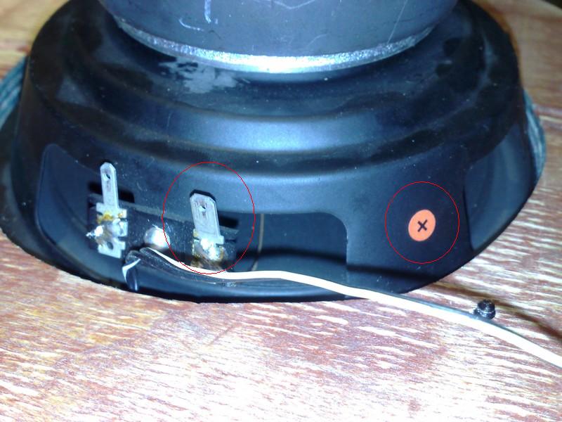 zdjęcie 2 , od tych mniejszych głośniczków idą 2 kable jeden czarny i jeden czarny z białym paskiem, który to plus który to minus, czy cały czarny to minus ?