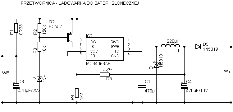 Postanowiłem wyjść od znanego, taniego i bardzo popularnego układu MC34063 - http://www.datasheetcatalog.org/datasheets/2300/501448_DS.pdf