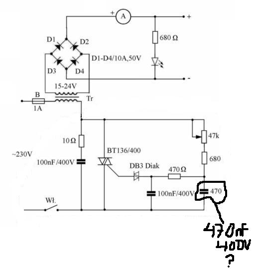 Czy poniższy schemat nadawałby się do regulacji prądu w prostowniku 4A mocy skutecznej 6A szczytowej??