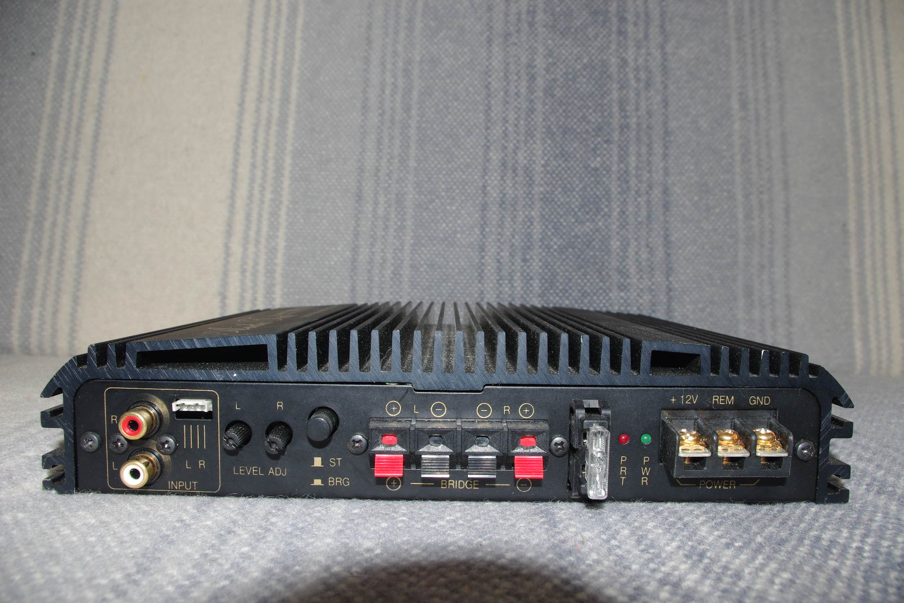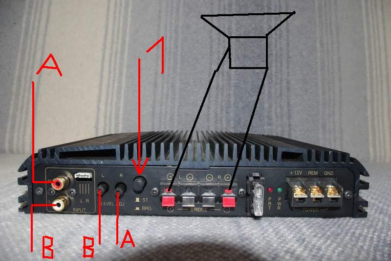 uzyskujemy pracę w mostku i wówczas wzmacniacz w trybie BRIDGE powinien"zbierać" niejako sygnał mono z jednego chincha. W przeważającej ilości spotykanych przeze mnie wzmacniaczy taki układ zrealizowany jest na wejściu kanału prawego czyli naszego wyrysowanego "A" i ... teoretycznie powinien reagowac na odpowiedni potencjometr . Dziwi mnie , że producent tego nie zaznaczył .