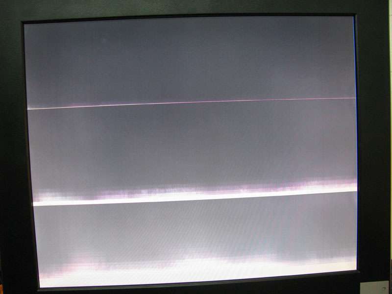 A tu niespodzianka, wrócił z dziwnym objawem - po włączeniu jest z 5 minut O'K, następnie matryca zachowuje się tak, jakby ktoś podgrzewał zapalniczką papier termiczny. Do tego ekran traci kontrast i po chwili pojawiają się poziome kreski.