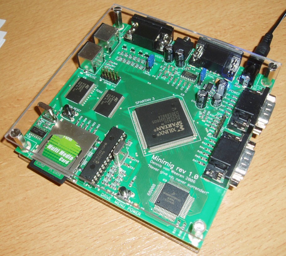 Minimig jest pełnosprawnym zminiaturyzowanym „klonem” komputera Amiga 500, wykonanym z użyciem układu FPGA. Dennis VanWeeren zminiaturyzował ją do pojedynczej płytki o wymiarach 12*12 cm. Jako pamięć masowa została wykorzystana karta pamięci MMC. Całość zasilana jest pojedynczym napięciem 5V.