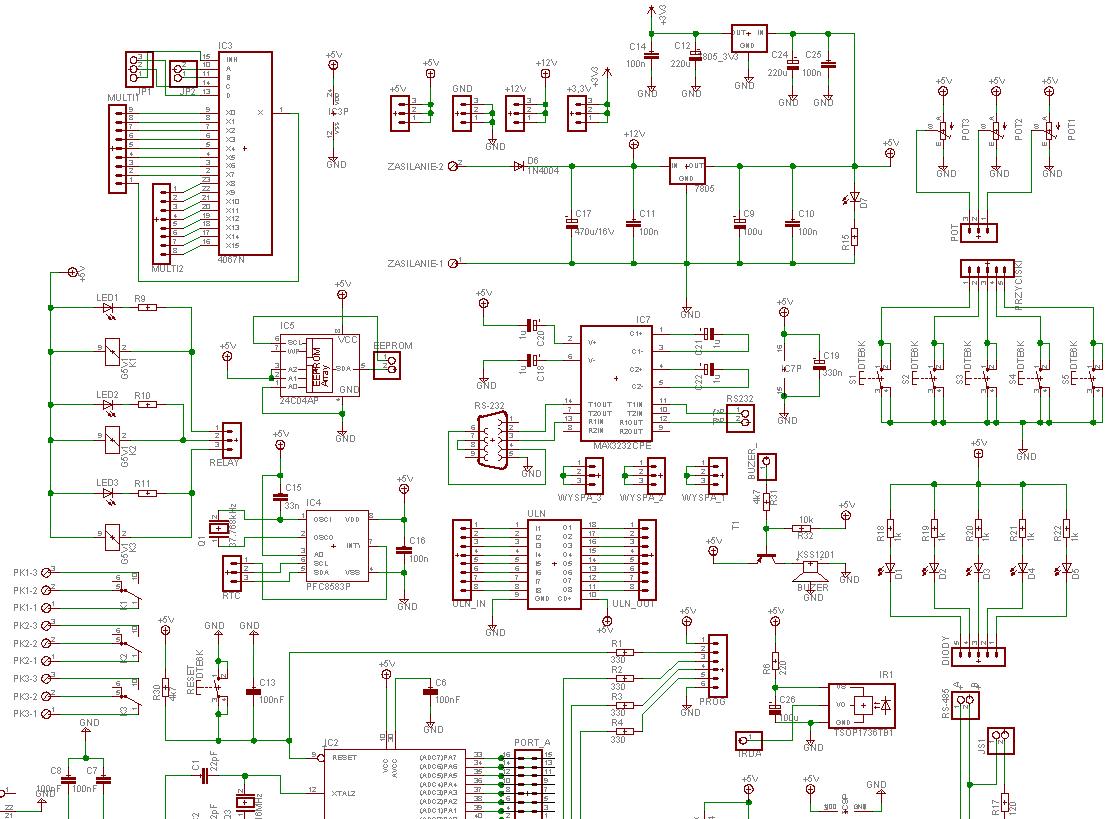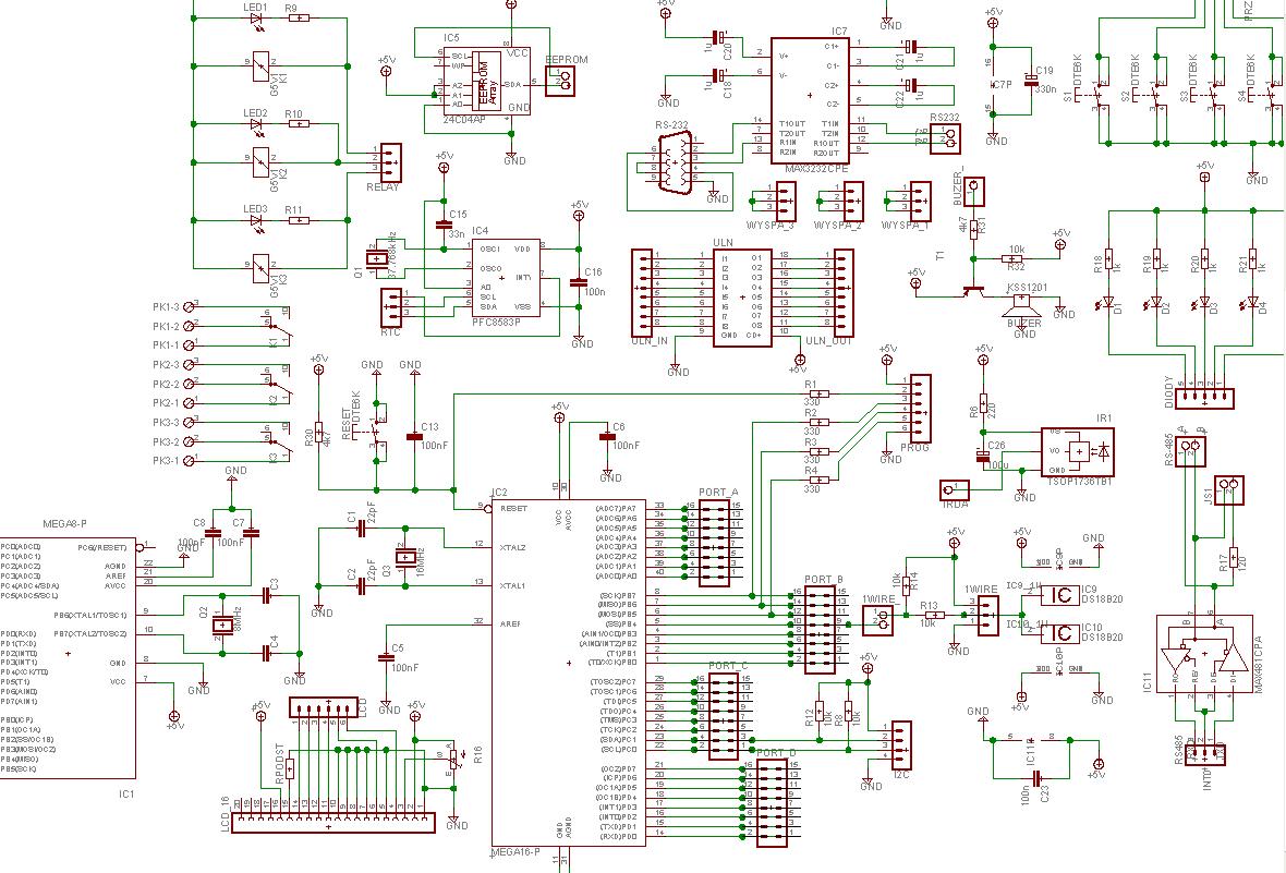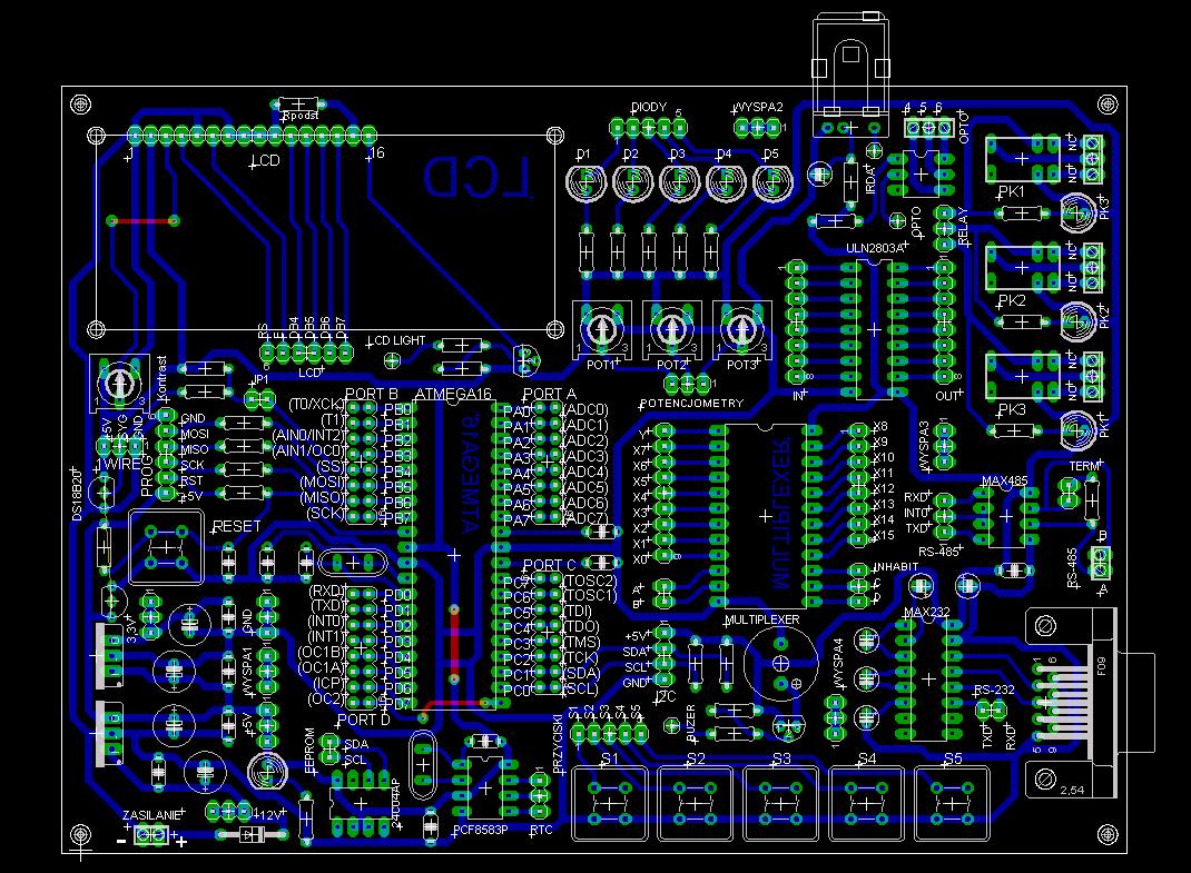 całość robiona tak bym mógł wykorzystać wszystkie porty atmegi (wyprowadzone dodatkowo na pinach)np: rs i irdę tak bym mógł połączyć pinami pod potrzebny mi port .czekam na wsze opinie
