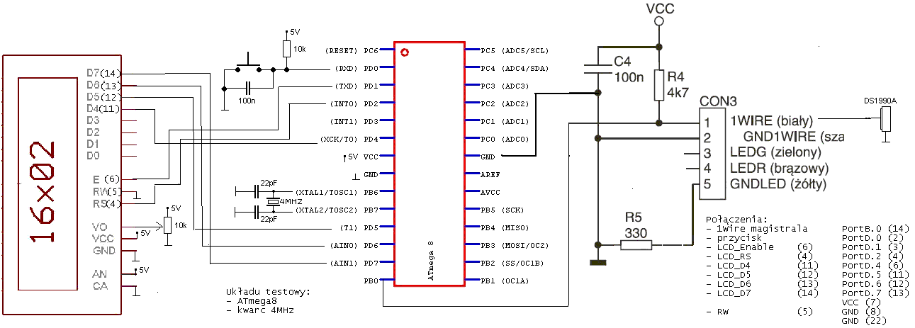 Wiem, temat był już poruszany, przeglądałem kilka wcześniejszych postów nt 1Wire, przeczytałem kilka dokumentacji, opis z TEJ strony, a także opis z książki "Mikrokontrolery AVR w praktyce". Patrzę w kod, i nie widzę jakichś błędów i wszystko wydaje się być w porządku. A mimo to nie mogę odczytać danych z pastylki DS1990A.