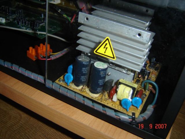 Szybciutko teraz wyłączam zasilanie, szybko zdejmuję obudowę żeby nie zdążyło ostygnąć i dotykam a w zasadzie łapię i ściskam radiatory - jeden jest ciepły ale nie gorący, drugi jest gorący ale nie bardzo, nie na tyle żebym był zmuszony go puścić, w każdym razie jeden radiator jest wyraźnie cieplejszy od drugiego, oba mają takie same rozmiary, z tym że na tym cieplejszym są trzy tranzystory (tak wyglądają), zaś na tym drugim zimniejszym dwa tranzystory i dwie diody.