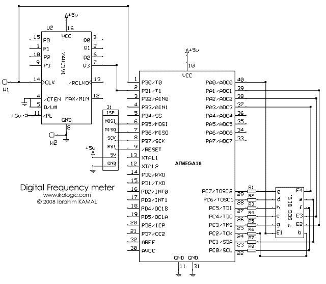 Jeżeli jesteś zainteresowany budową własnego licznika częstotliwości, to ten projekt na pewno okaże się dosyć pomocny. Samo urządzenie jest stosunkowo proste i jego budowa nie powinna sprawić problemu początkującym elektronikom. Przedstawiony projekt ma zakres pomiaru do 40 Mhz i dokonuje pomiarów z dokładnością 99%. Całość zbudowana jest na mikrokontrolerze Atmega 16 i 4-bitowym liczniku 74191. Schematy i program do mikrokontrolera znajduje się na stronie źródłowej. Ponadto znajduje się tam dokładny opis algorytmu obliczania częstotliwości, co może okazać się przydatne dla bardziej dociekliwych amatorów.