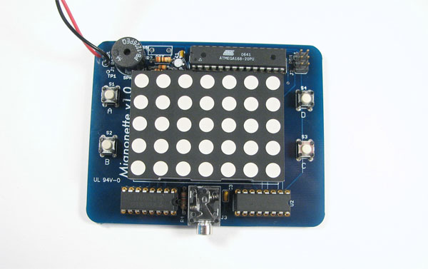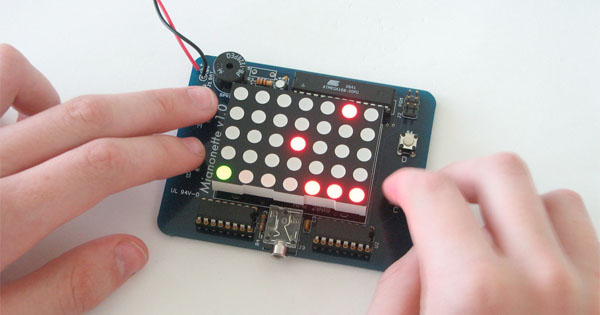 Jest t jeden z najprostszych a zarazem bardzo ciekawych projektów. Jest to mała konsola do gier zbudowana na mikrokontrolerze AVR i matrycy LED (dla tych, którzy byliby nią zainteresowani polecam zajrzeć do katalogów elfy; dostępna jest w cenie poniżej 30 zł). Wyposażona jest w cztery przyciski i zasilana dwiema bateriami AA. Posiada także prosty głośnik. Schemat dostępny jest w dziale download na stronie źródłowej. Znajdziemy tam też jakąś grę do ściągnięcia.