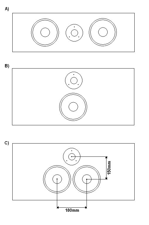 Potrzebuje zbudować centralnego do duzego pokoju. Co myslicie o propozycji c ? Oba 180mm midbasy pracowaly by w tym samym pasmie.