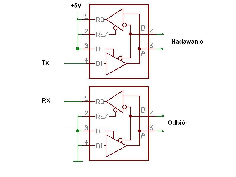 Jest ok, choć ja w takich przypadkach zwykle zostawiam linię RO w torze TX oraz linię DI w torze RX niepodłączone. Ale to nie wpływa na "życie chrabąszcza".