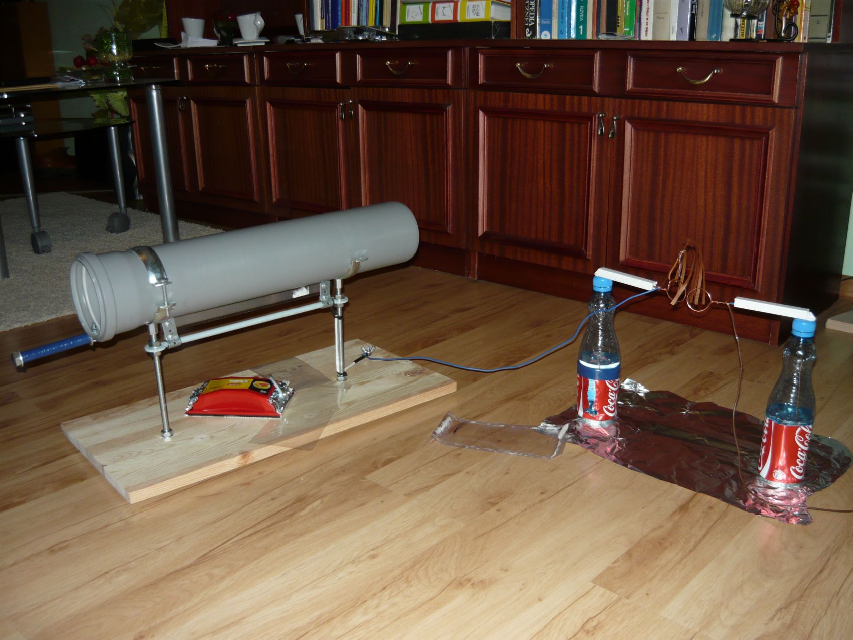 ale widziałem działanie podobnej do mojej. Nie wiem czy piłka do metalu powinna byc odizolowana od uchwytów i czy powinna delikatnie trzeć o rurę?? Ile soli powinno być w butelce lejdejskiej?? pozdrawiam