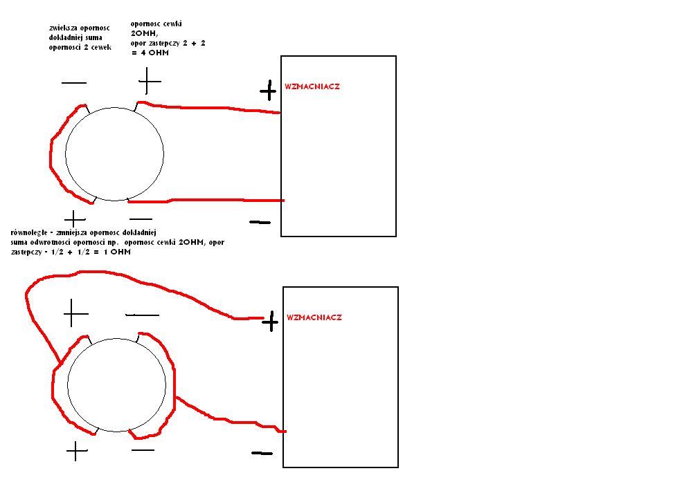 Witam wszystkich ponownie! Kupiłem Sonica 15 i monoblok Peiyinga i z tego co wiem, to mam to wszystko podłączyć równolegle żeby było na 1Ohm. Wszystko w porządku, tylko ja nie mam pojęcia, jak takie połączenie wygląda