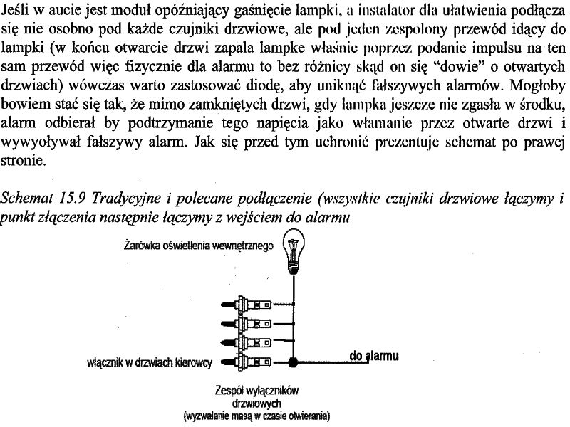 Pisza tez ze musze stosowac diode w przypadku lampki z opoznionym przygasaniem.czy to konieczne?Przeciez alarm uzbraja sie chyba dluzej niz ta lampka sie swieci.I zdazy zgasnac zanim alarm sie uzbroi.