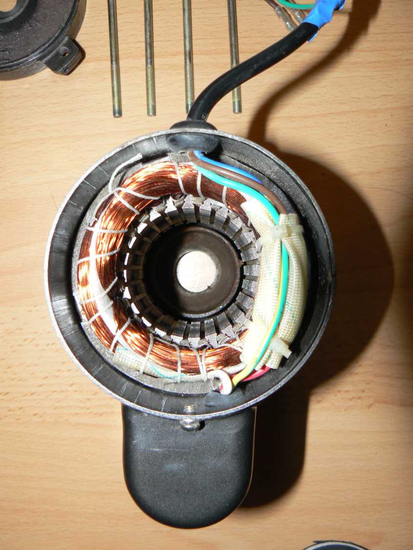 Jeśli to pomoże to silnik posiada "wirnik" służący do chłodzenia powietrzem, plastikowy wiatraczek. W obudowie maszynie znajduję się tylko włącznik z jednej strony przewód zasilający 230V a z drugiej końcówki do podłączenia silnika, żadnych układów elektronicznych.
