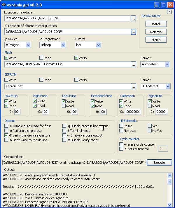 spotkał sie ktos z takim błędem,jakiś miesiac temu programowałem atmega8 było wszystko dobrze przez ten czas nic nie zmienialem w ustawieniach avrdude i dziś wyskakuje mi taki bład, ktos wie co moze byc przyczyna ??
