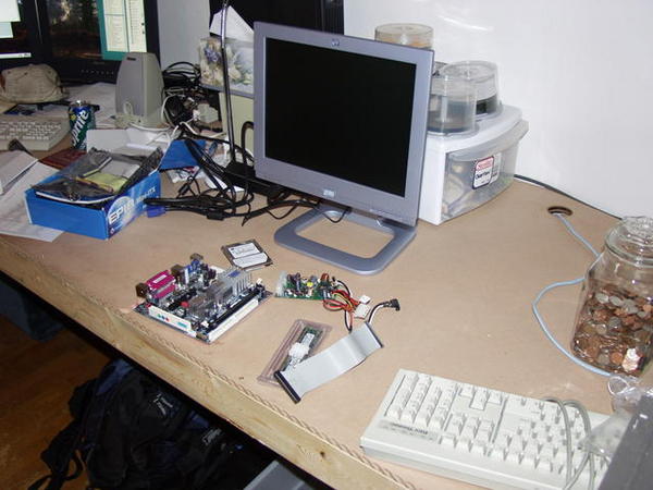 Postanowiłem użyć płyty głównej VIA EPIA mini-itx. Kupiłem zasilacz o napięciu 12V i twardy dysk laptopa do przechowywania danych. Duża i niedroga pamięć flash nie była wtedy dostępna. Gdybym miał to robić jeszcze raz, dodałbym czytnik kart taki, jakie posiadają produkty komercyjne. Wszystkie te części można by zamontować w środku drewnianej ramki z tyłu monitora LCD.