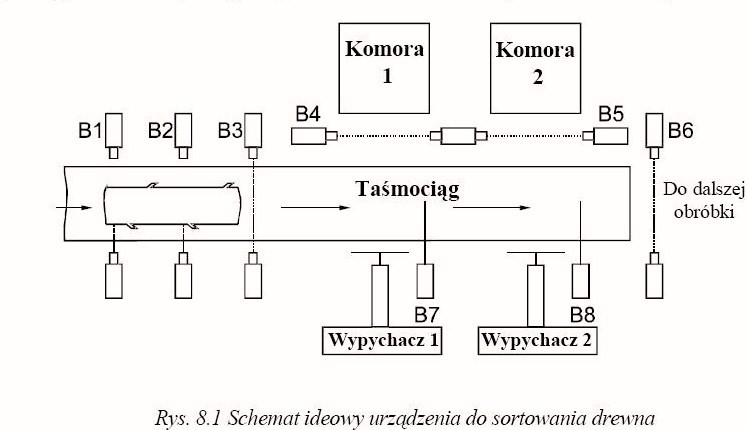 Pewno większość z Państwa zna przykład układu sterowania urządzeniem do sortowania drewna z książki Legierskiego pt.: Programownie sterowników PLC".