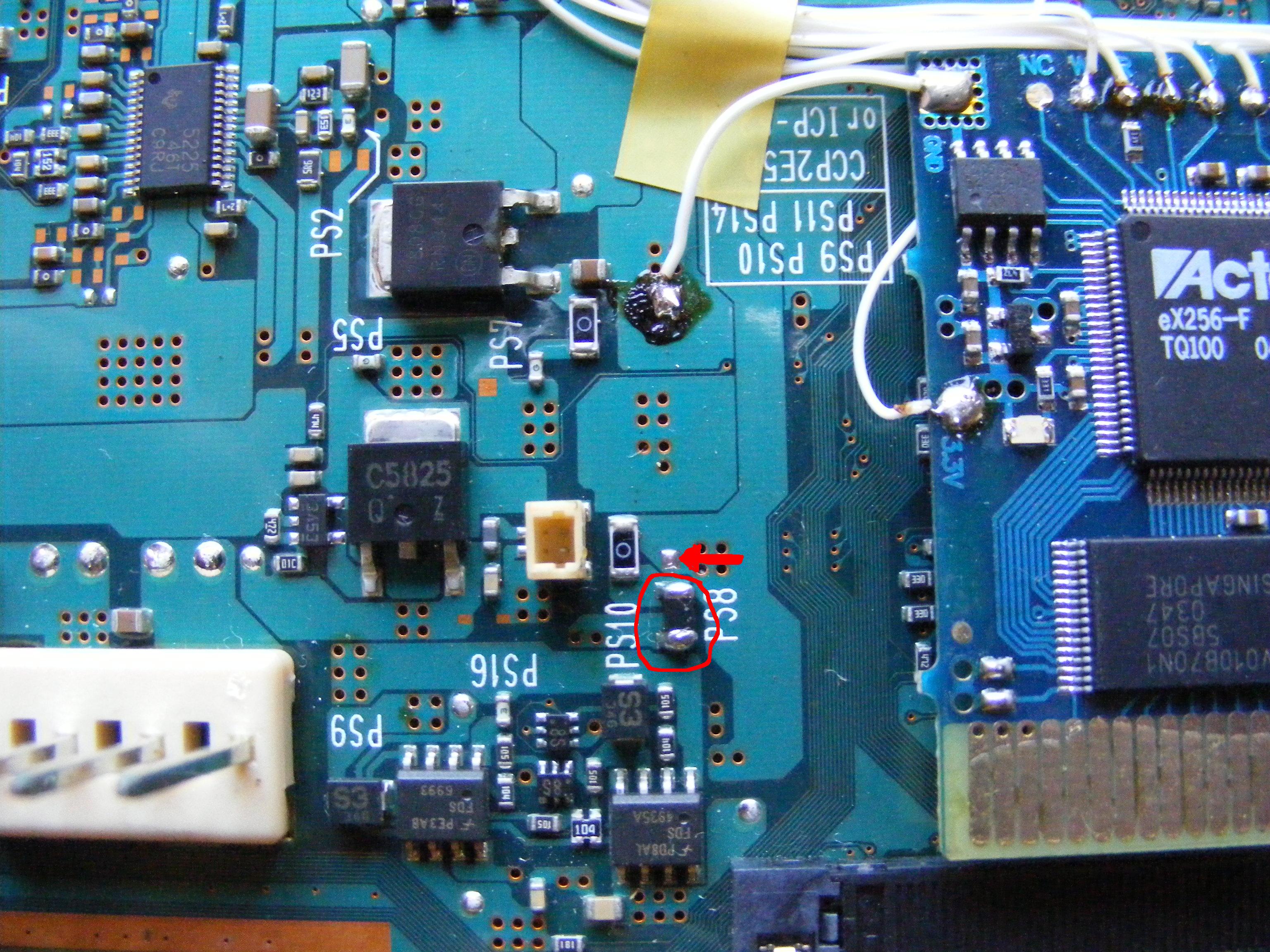 A więc tak: PS2 dostałem od znajomego mówił że coś się zepsuło i nie chce mu się tego robić więc mi dał za free. Rozebrałem więc je i zobaczyłem że 1 kabelek jest odlutowany (zapewne gdzieś z rippera. (widać na fotkach, jest na czerwono zaznaczony)