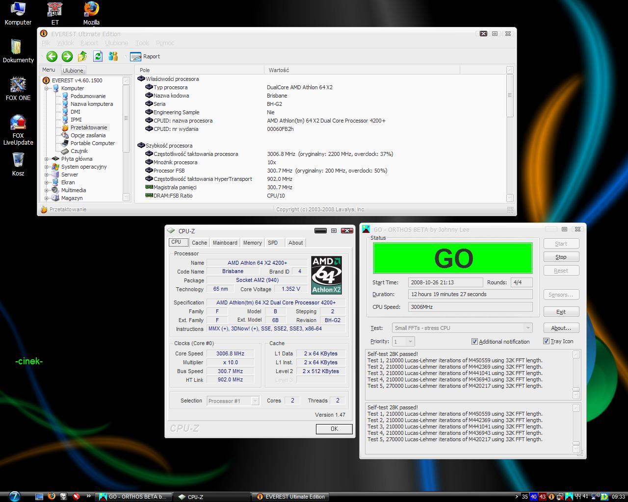 Czy Brisbane poradzi sobie z 1.35V? Chłodzenie oczywiście nie jest problemem - Scythe Katana2 przesmarowana Arctic silver. Obudowa również chłodzona. Aktualnie procesor obciążony Orthos`em dobił po niemal dwóch godzinach do 44°C