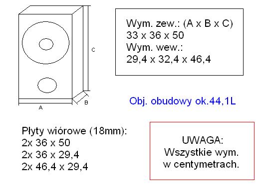 Naczytałem się pełno na temat tego głośnika i stwierdzam ,że chcę zmniejszyć obudowę na ok 45L. Podkreślam, że sub ma być w 90% do słuchania muzyki chociaż raz po raz chciał bym obejrzeć jakiś film no to tak by się nadawał do tego i tego.