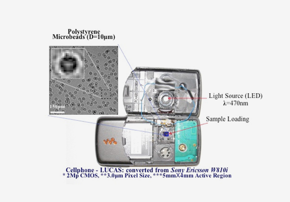 Testy krwi wymagają obecnie albo urządzeń wielkości lodówki, które kosztują setki, tysiące dolarów, albo wyszkolonych techników, którzy ręcznie identyfikują i zliczają komórki pod mikroskopem. Być może za niedługo takie metody przejdą do historii. Naukowcy z Uniwersytetu Kalifornijskego przystosowali telefon komórkowy (SE W810i) do badania krwi. Aby zbadać komórki nałożono próbkę krwi na odsłonięty przetronik aparatu i podświetlono przefiltrowanym źródłem światła. Takie światło pomaga w rozróżnieniu komórek pod względem jakościowym. Po zrobieniu zdjęcia, odpowiedni software przetwarza dane i w przeciągu minuty podaje wynik badania. Utworzono też prototyp takiego urządzenia o nazwie LUCAS i obecnie autorzy są na etapie poszukiwania producenta. Jeśli urządzenie trafi do masowej produkcji, będzie to na pewno szansa na walkę np z HIV czy malarią dla mniej rozwiniętych krajów.