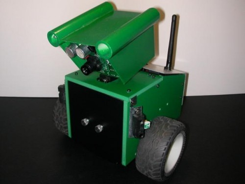 Sonar i kamera zamontowane są na ruchomej głowicy o dwóch stopniach swobody. Robot posiada także enkodery kwadraturowe na każdym z dwóch kół.