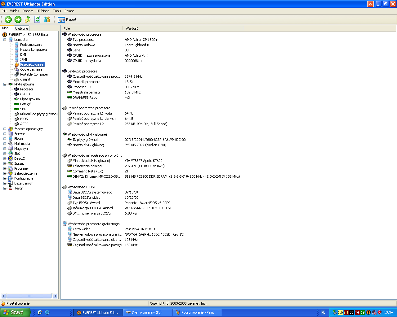 Chodzi o to że gdy ustawię taktowanie zworkami na płycie 200MHz, procesor zaczyna taktować seryjnie około 1,8GHz, i pamięć też chodzi na 400MHz, ale procek bez żadenego obciążenia ma temp. 81'C, małe obciążenia np. instalacje jakiegoś oprogramowania ponad 90'C no i komp się wyłącza bios wydaje ciągły pulasaycjny dźwięk taki jak przy błędzie pamięci albo karty grficznej. Kiedyś miałem już taki przypadek też się procek przegrzewał ale wentylator i radiator były zapchane po oczyszczeniu było ok. Tu radiator, wentylator wszystko czyste styki kontaktowe porządnie wysmarowane pastą. Zastosowany radiator jest przewidziany na procek 3GHz, ale patrząc po Everescie ma niskie obroty ok.2000rmp. W biosie mogę tylko przestawic częstotliwość pamięci DDR, mnożnika oraz FSB od CPU nie ma.