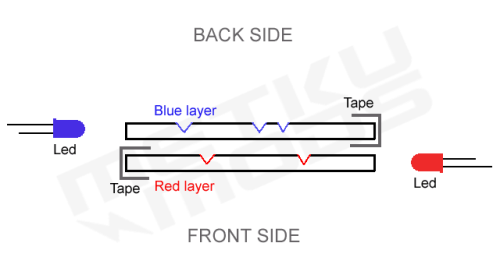 Pleksi musi być na tyle grube żeby miało szerokość przynajmniej taką jak dioda którą w nią zatopimy. Aby więcej światła pozostało w obrębie pleksi, całość obklejono taśmą aluminiową która dobrze je odbija.