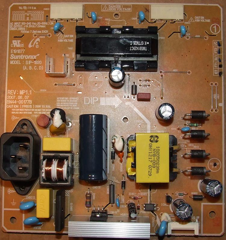 Oznaczenie zasilacza BN44-00177B, uszkodzony transformator w inwerterze TMS91429CT. Może któryś z kolegów może pomóc i ma na zbyciu albo trafo albo cały zasilacz.