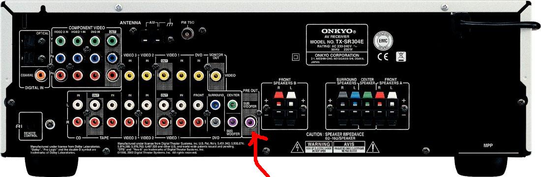 Mam problem z poprawnym połączeniem subwoofera Wharfedale wh-210 do Amplitunera Onkyo TX-SR 304 E ....
