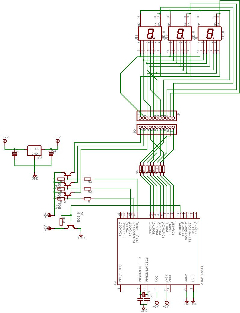 Endnie jestem w stanie zapalić żadnego z segmentu. Układ zrobiony jest poprawnie bo gdy podłączam na krótko (przy wyjętym uc) w odpowiednie miejsca podstawki dając mase zapalają mi się poszczególne częsci segmentów.Dodam jeszcze że układ pracuje na wewnętrznym oscylatorze rc. Po podłączeniu do oscyloskopu widać że zmieniany jest stan na końcówkach portu d a na koncówkach portu c pin5 i pin4 jest stan wysoki i ten stan się nie zmienia.