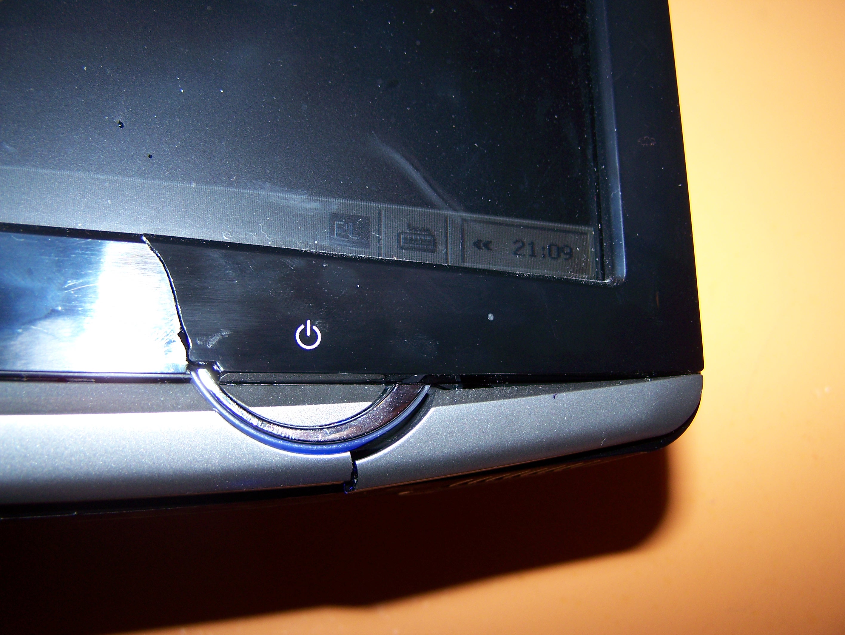 Po miesiącu w okolicy włącznika pojawiło się baardzo małe pęknięcie. Nastepnie zauważyłem, ze przedni panel w dolnej cześci (okolice włącznika) zaczął się odklejac!