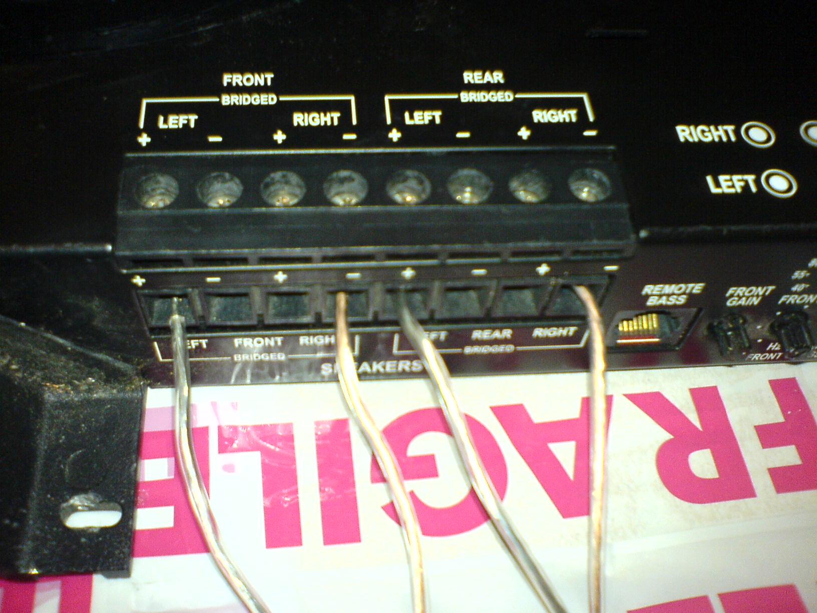 "Mostkowanie" 2 kanałów jest możliwe tylko wtedy, gdy każdy z nich jest zrealizowany w układzie "SEPP" (Single Ended Pusch Pull), ale wtedy oporność głośnika wpiętego w "przekątną" mostka nie może być niższa, niż 2 razy nominalna oporność dla układu "pojedynczego". Ponadto pojawia się problem wysterowania obu "polówek" mostka dokładnie takim samym sygnałem, ale w przeciwfazie, a tego sie nie da zrobić bez interwencji "w bebechy".