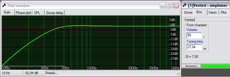 Posiadam subwoofer z głośnikiem Emphaser impulse s3 (el12) w skrzyni po Axtonie (55 l). Wpisałem parametry w program i nie wiem jak powinien wyglądać możliwie najlepszy wykres dla tego głośnika, chciał bym żeby był to pożądny sprzęt. Proszę o poradę. Parametry : EI12 Größe 12" Vas (liter) 172,2 Fs (Hz) 22,7 Qts0,34 . Pozdrawiam