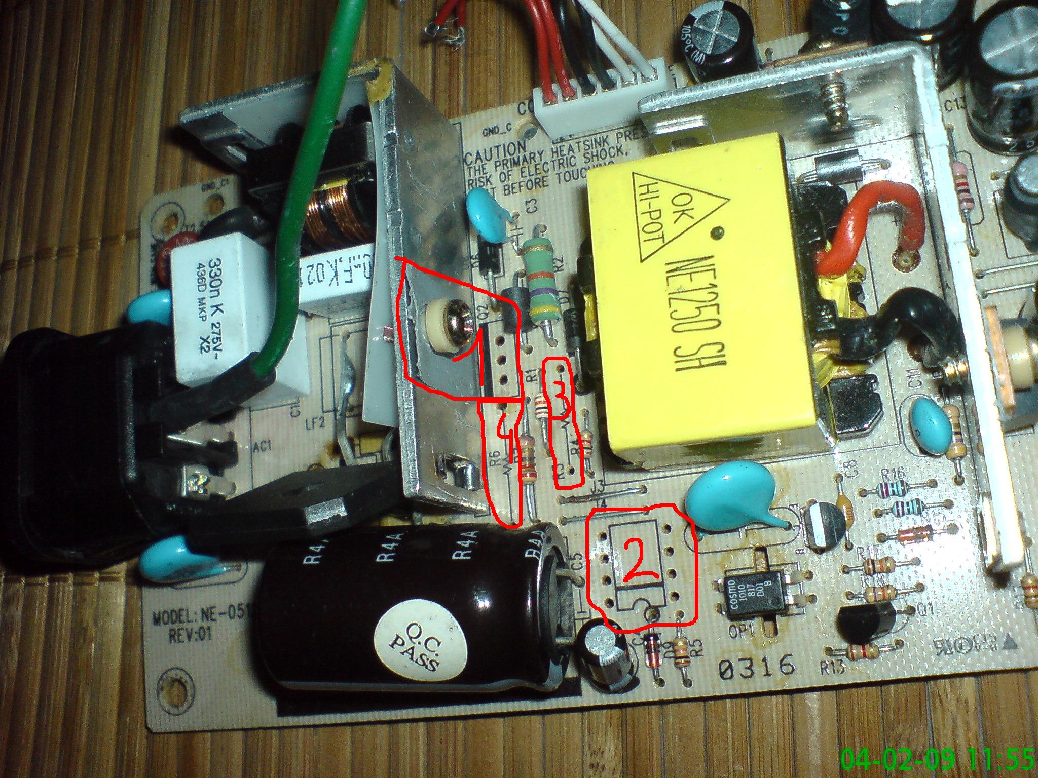 Tak jak w temacie posiadam taki monitorek i uszkodzony jest w nim zasilacz. jest to zasilacz wewnętrzny czyli w środku monitora wychodzić z niego powinny 2 napięcia 12 i 5 V reszta jest sprawna bo jak podłączyłem monitor pod zasilacz warsztatowy z 2 napięciami to wszystko hula. i teraz czy ktoś może ma schemat tego monitorka bo bez niego ani rusz. monitor dostałem rozgrzebany i nie posiada on kilku elementów tranzystora opornika i układy scalonego 8 pin. zdjęcie znajduje sie poniżej z zaznaczonymi brakami. Myślałem jeszcze nad zrobieniem własnego zasilacza 5 i 12V ale musiał by być malutki żeby się zmieścić w płaską obudowę monitorka. Czekam na jakieś sugestie, schemat lub jaką