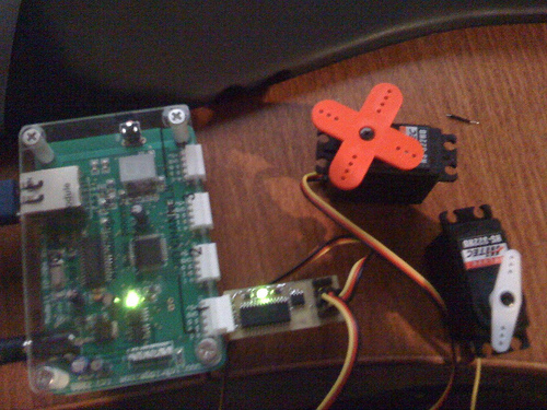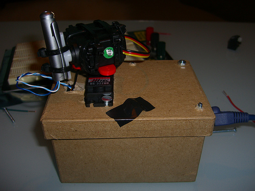 Przedstawiam projekt, który pomoże zabawić niejednego psa podczas gdy jesteśmy poza domem. Zabawa polega na próbowaniu złapania kropki przez psa wskazywanej laserem . Na suficie pokoju w którym jest miejsce do zabawy autor zainstalował wskaźnik laserowy obracany za pomocą dwóch serwomechanizmów, kamerkę internetową do podglądu akcji wraz z dodatkowym oświetleniem oraz buzer sygnalizujący początek i koniec zabawy. Zastosowanie iobridge pozwoliło na sterowanie urządzeniem przez internet. Do tego celu autor zaprojektował specjalną stronę dla iPod'a. Poniżej film prezentujący urządzenie.