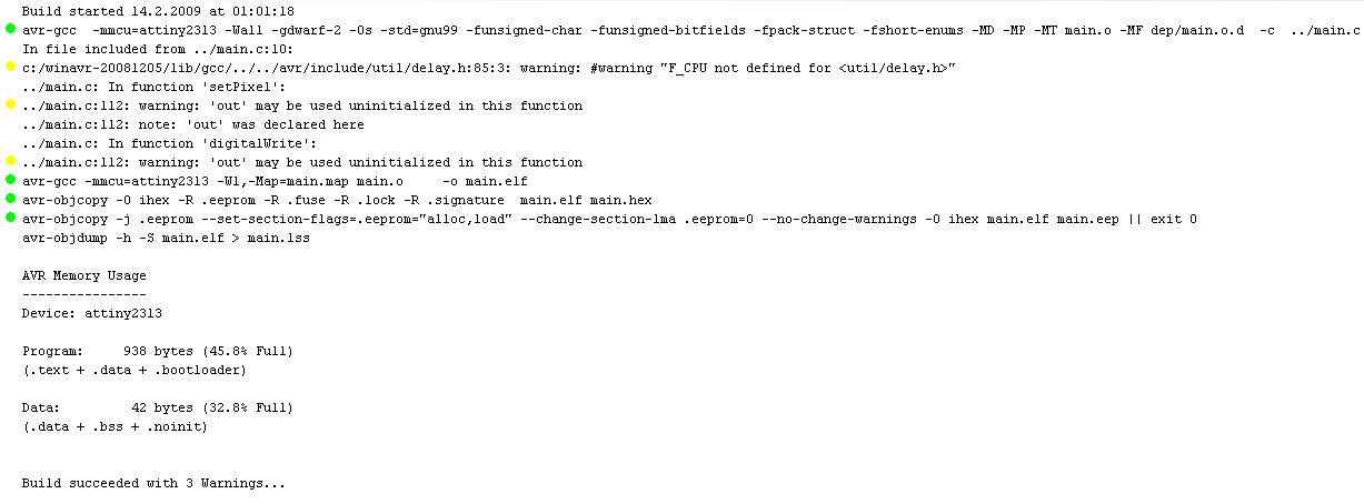 Niestety AVR Studio wywala mi 3 ostrzeżenia, wygląda to tak: