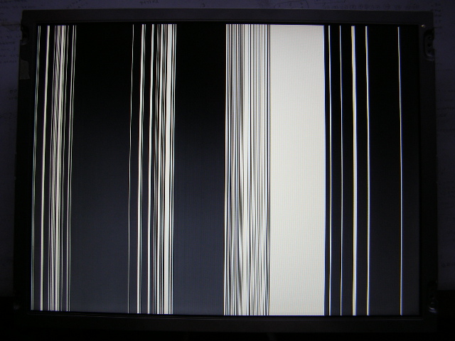 Koledzy trafił do mnie monitorek, który się nie włączał. Po rozkręceniu zobaczyłem, że ktos już kiedyś wymieniał tranzystory w inwerterze i dołożyl małe radiatorki do nich. Wymieniłem elektrolity na płytce zasilacza i monitor się już włącza jednak na ekranie są tylko pionowe pasy. Ich konfiguracja jest różna ale wystepują w tych samych obszarach ekranu.