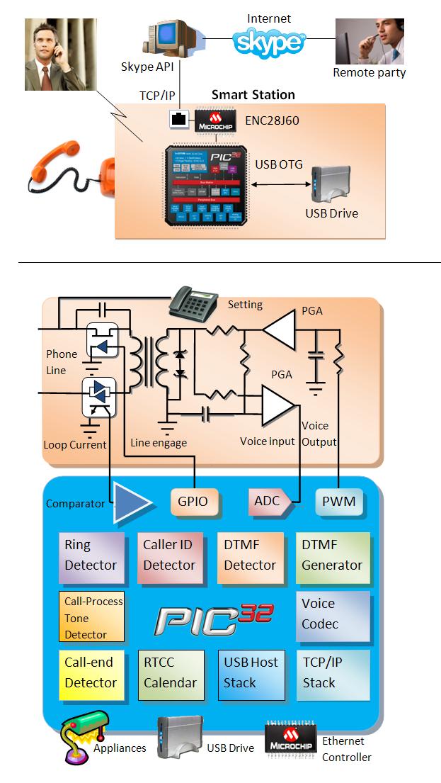 Każdy z nas pewnie już nie raz użył Skype'a w celu redukcji kosztów połączeń międzynarodowych. Niestety, aby skorzystać z jego możliwości niezbędny jest komputer z podłączeniem do internetu. Autor tego projektu zbudował urządzenie które pozwala przeskoczyć ten problem.