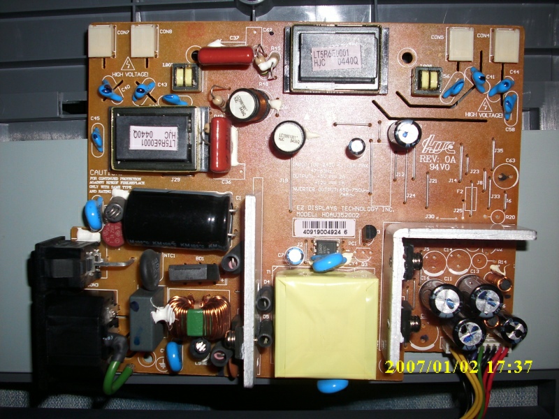 Witam mam problem z monitorem Medion model AE19E1 - monitor wylaczyl sie i nie reaguje na power nie swieci sie tez lampka od zasilania. Slychac tylko delikatne piszczenie. Po rozkreceniu i odlaczeniu plytki z przetwonica i podpieciu zasilania slychac pstrykanie - wiec slychac probkowanie. Z tego co widze napisane sa na nim napiecia jakie maja wychodzic czyli +5 +12 i napiecie na inwerter. Napiecie na +5 wynosie 4.8V a na 12C - 26V - wiec widac ze cos tu nie tak tylko nie wiem gdzie tego szukac. Prosze o pomoc.