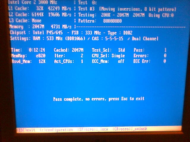 Włączyłem test i ku mojemu zdziwieniu przeszedł dobrze. BIOS poprawnie ustawił napięcie na 2,1V oraz TIMINGI na 5-5-5-15.