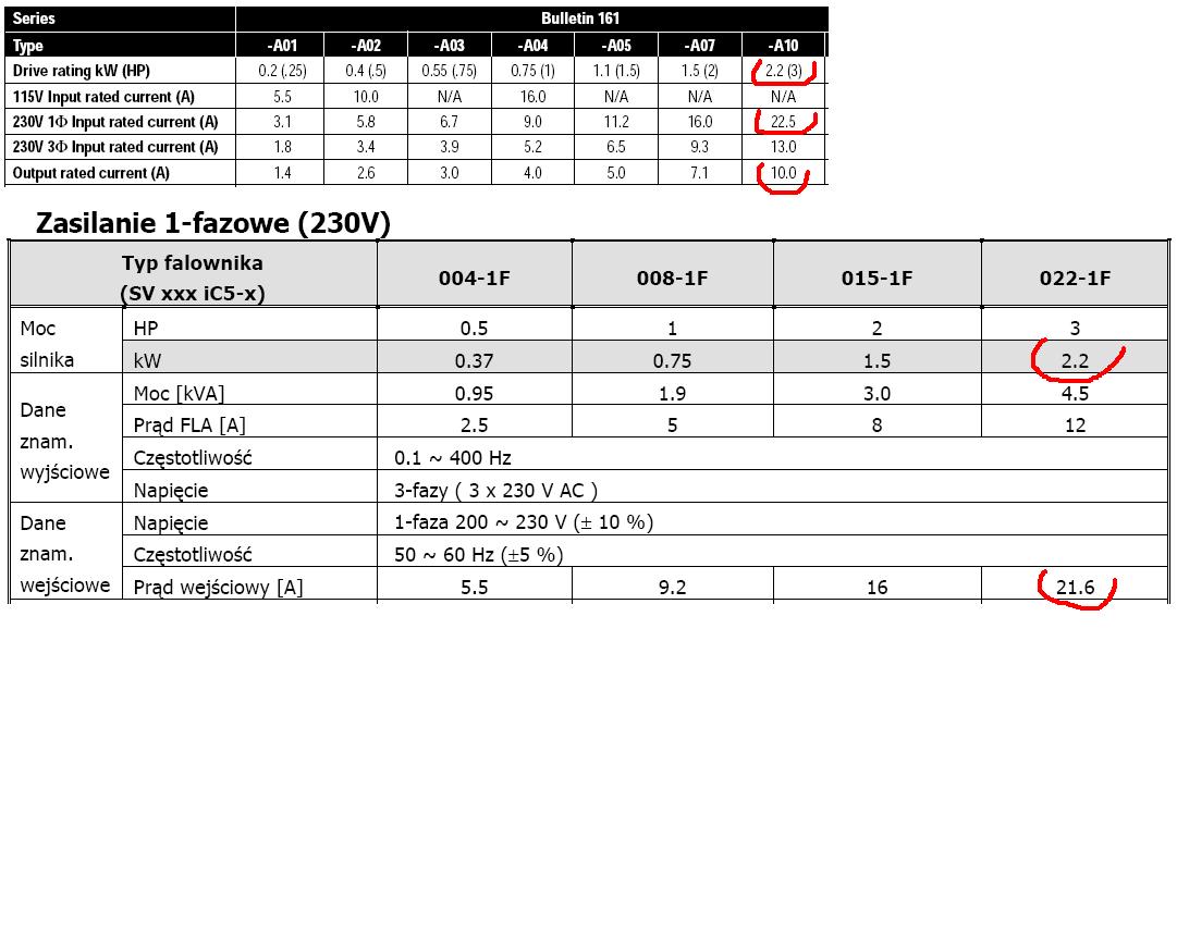 Prosze o pomoc! Chce kupic falownik 220 x 2,2 kW (troche kosztuje) do silnika 2,2 kW 3 fazy. Pytanie- czy falownik o podanych parametrach wytrzyma obciazenia?