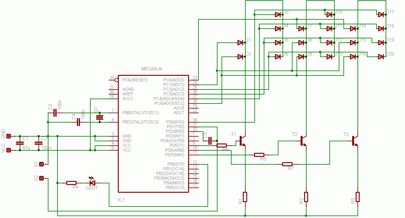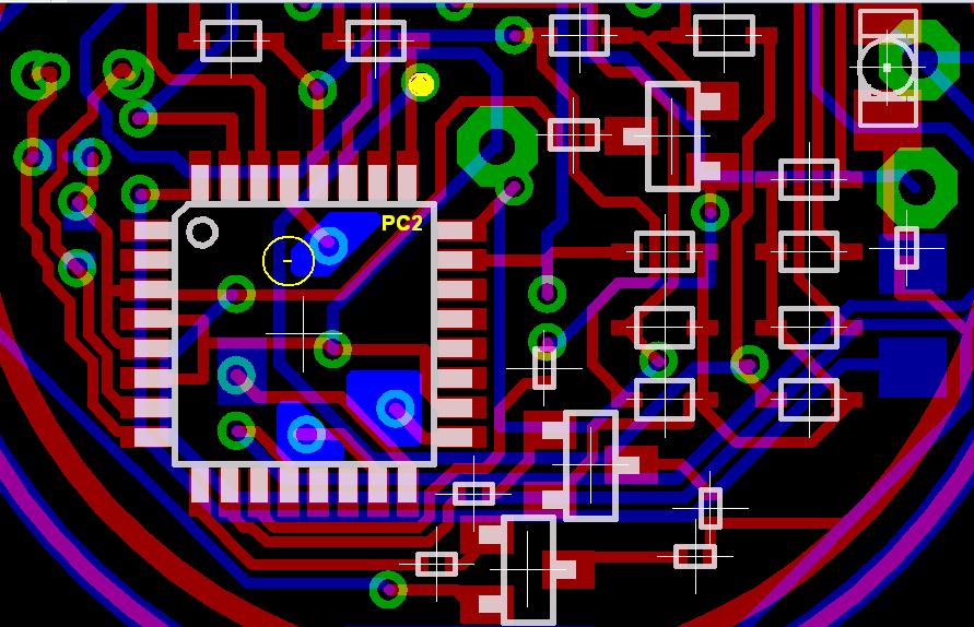 w momencie ustawienia portu PC2(załączenie diod D6, D13, D20) na stan niski µK zaczyna szaleć wyłącza inne porty,