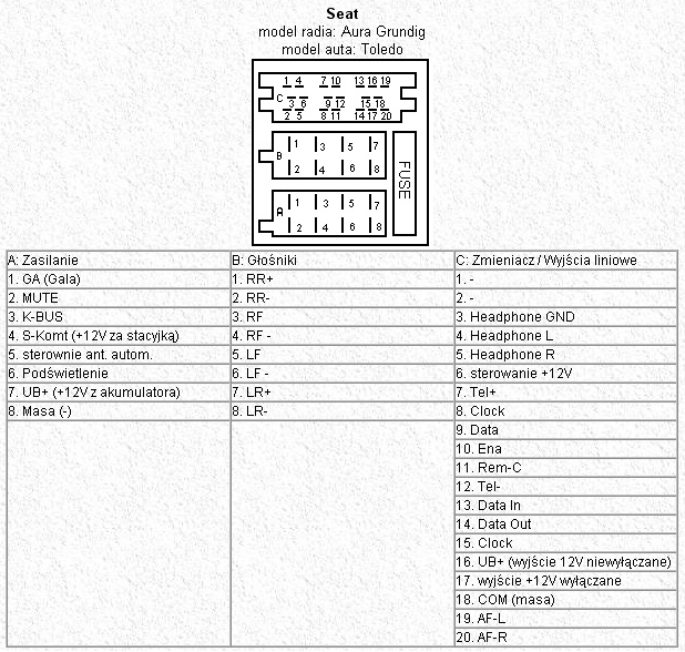 poniżej są gniazda w radiu